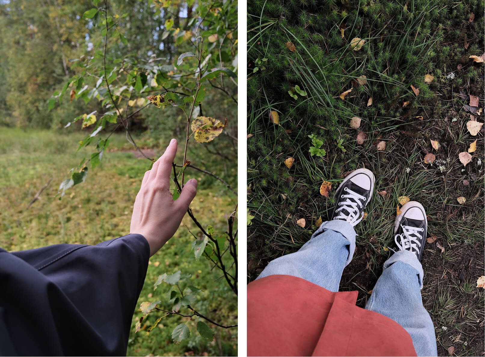 Осязание — прикосновение к коре деревьев, траве, земле.